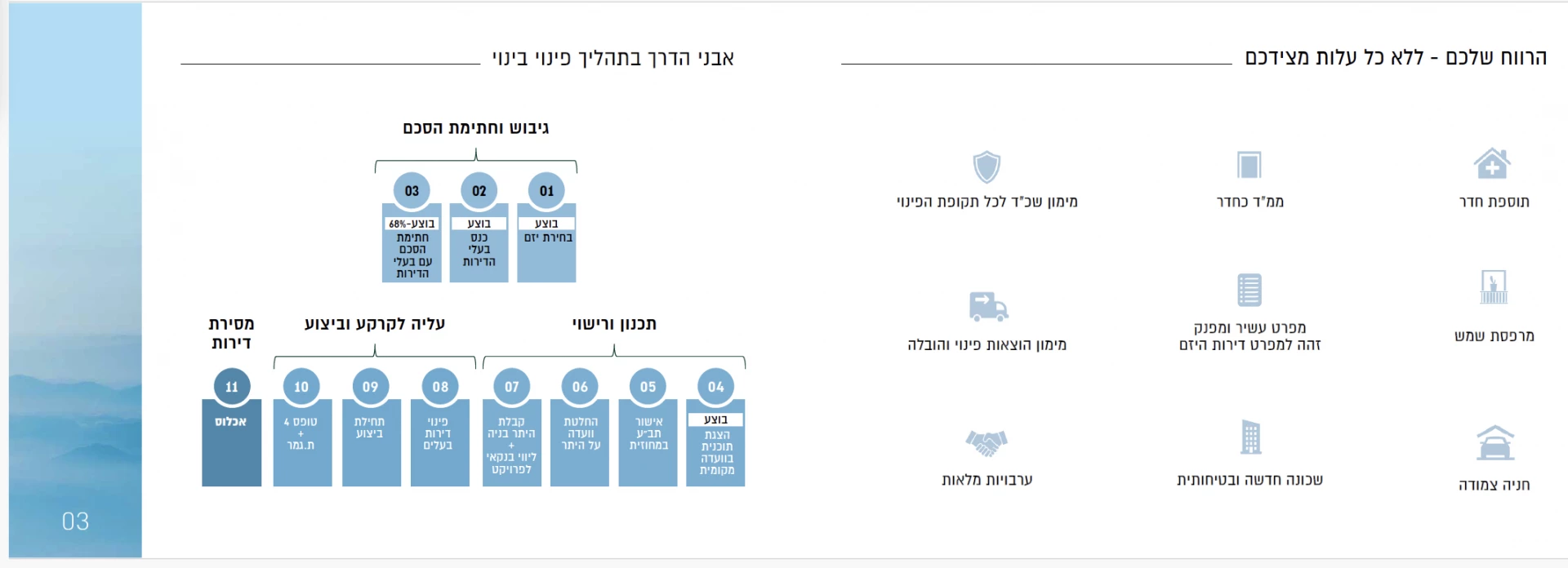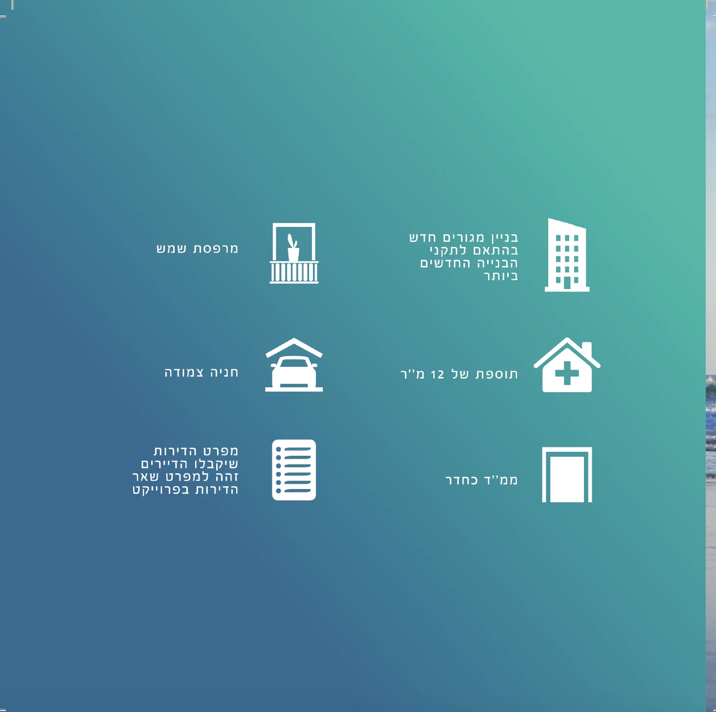 תקבלו דירה חדשה בקומה 1-10 בתוספת של 25 מר בנוי + מרפסת + חניה + מחסן .