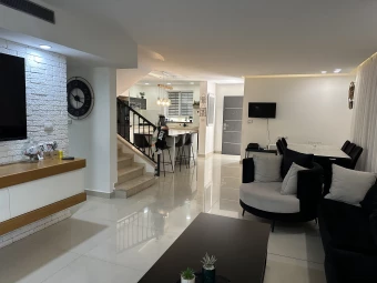 למכירה בגן יבנה, בית בעיצוב כפרי מודרני מגרש 370 מטר,2 קומות 200 מטר בנוי כולל מרפסות. סלון בחלל פתוח בעל נפח גבוה במיוחד, קומה ראשונה ריצוף שיש איטלקי,יציאה מהסלון לגינה גדולה מרפסת מקורה בפרגולה,קומה שניה יחידת סוויטת הורים 80 מטר...