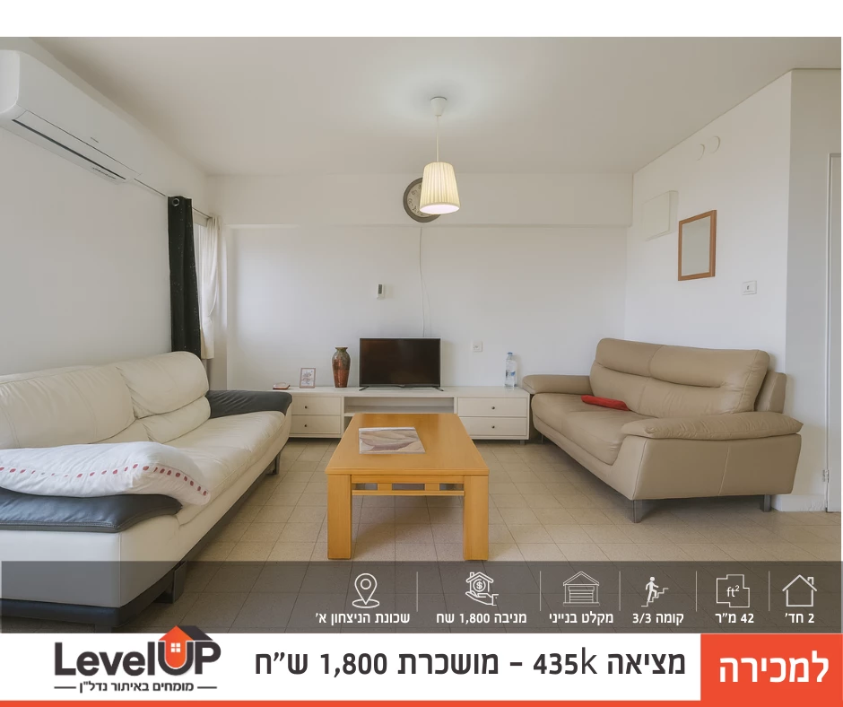2 חדרים קרובה למרכז העיר, באיזור מתפתח עם שכונה חדשה עתידית להיבנות ממול!