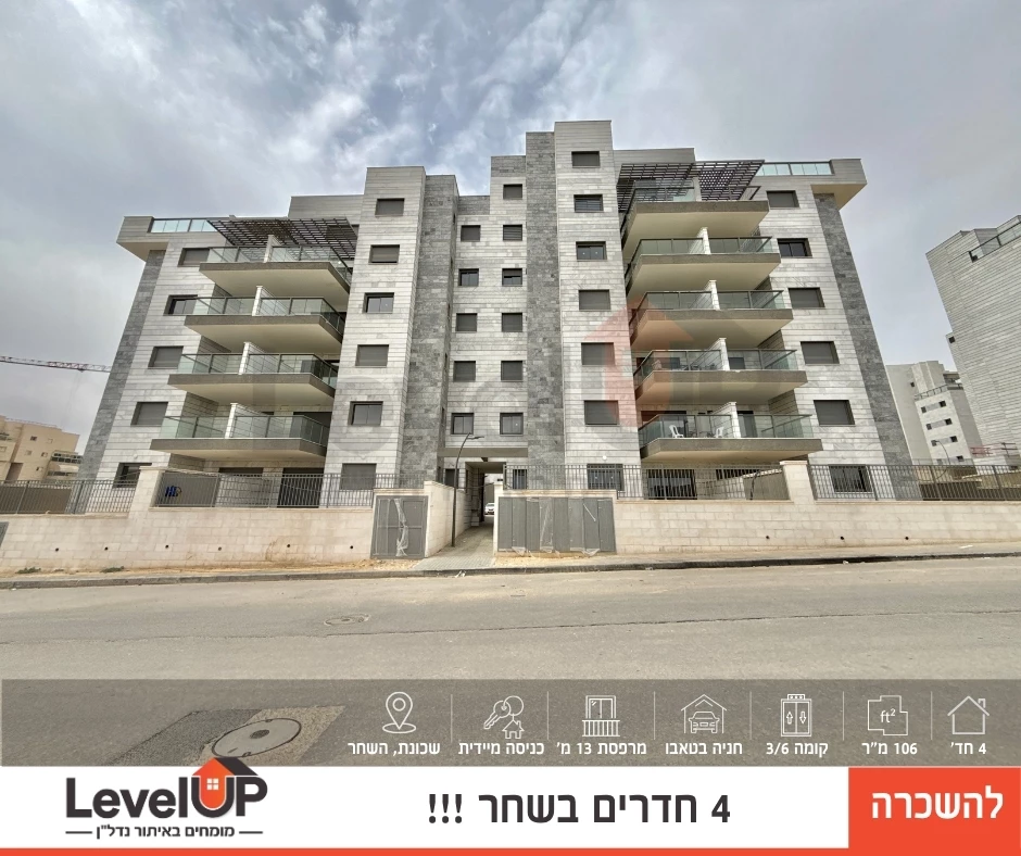 דירת חלומות להשכרה בדימונה, בשכונת השחר. הדירה ממוקמת בבניין בוטיק חדש ומפואר, בקומה 3 מתוך 6. הדירה מוארת ומאווררת, ומציעה נוף יפה לסביבה. עם כ 134 מ"ר לפי ארנונה, 4 חדרים ומטבח מפנק, תהנו ממרפסת שמש ומסתור לכביסה. בנוסף, תמצאו רצפת פורצלן, חלונות חשמליים, סוויטת הורים מפנקת. השכונה מתפתחת במהירות וקרובה למוסדות חינוך ותחבורה. חניה בטאבו וחניון עם שער חשמלי. אל תחמיצו את ההזדמנות לגור בדירה מושקעת ומרשימה כזו! צרו קשר לפרטים